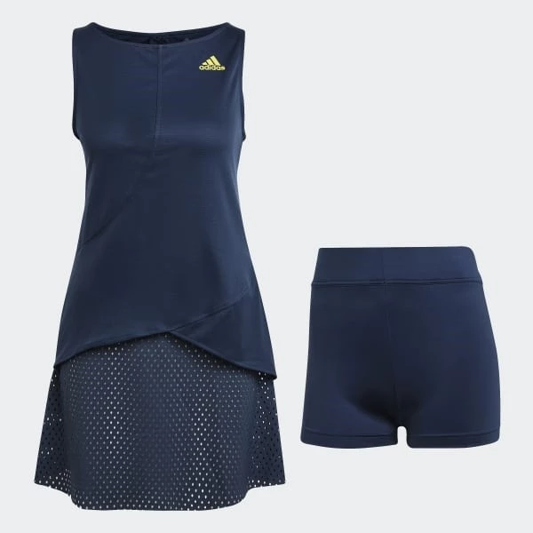 Play for the planet while beating the heat. Air-cooling HEAT.RDY fabric makes this adidas tennis dress perfect for scorching days on court. It was created using Primeblue made with Parley Ocean Plastic, part of the adidas commitment to help end plastic waste. Mesh panels on the back add interest and targeted ventilation.