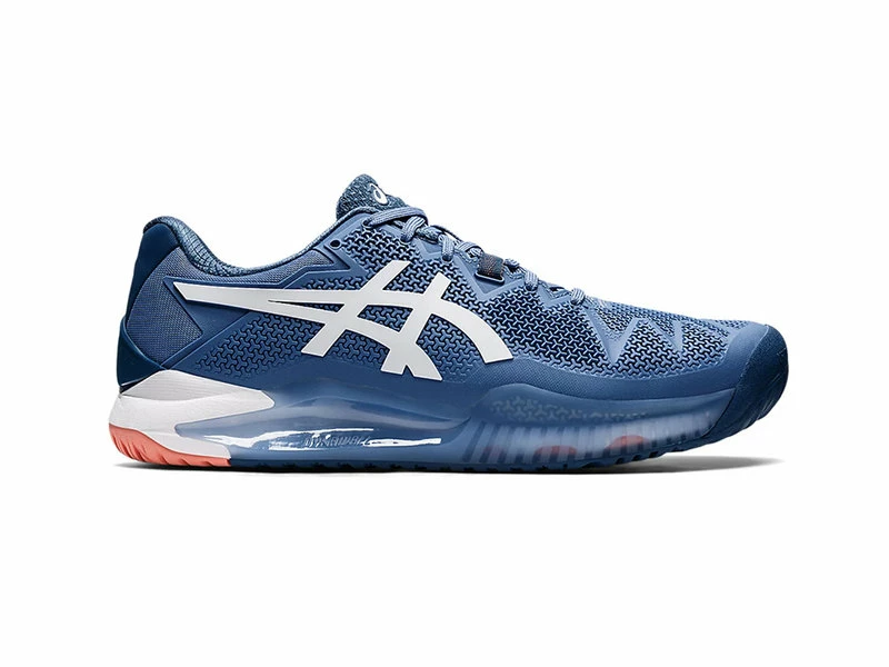 The GEL-RESOLUTION 8 tennis shoe promotes a responsive stride with a close-to-the-court feel.