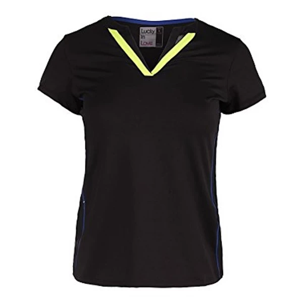 Women’s Short Sleeve Double V Tennis Top Black