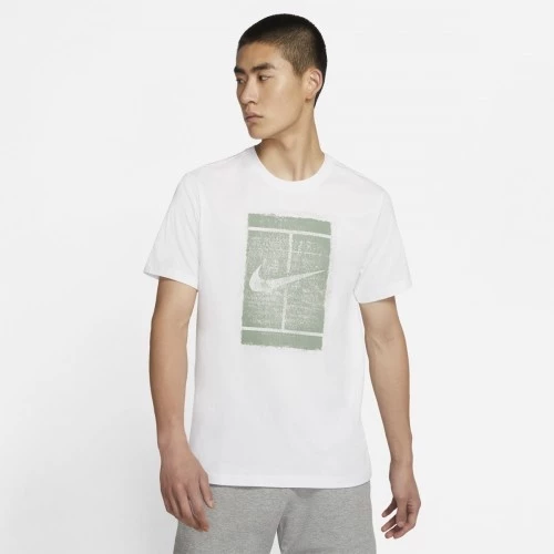 Show off your style with our Nike Men`s Court Seasonal Tennis T-Shirt. This T-shirt is made with soft jersey fabric and sports a bold NikeCourt logo. It also has a ribbed neckline that stretched as you move and a standard fit for a relaxed, easy feel.