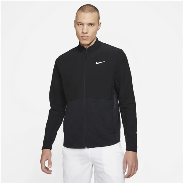 Nike Men`s Court HyperAdapt Advantage Packable Tennis Jacket. This jacket is portable and makes for a great layer to have between matches. Its stretchy woven fabric is equipped with a water repellent finish to keep you dry in wet weather. This jacket also comes with a full-length zipper and a round zipper pull for easy adjustment. You will also love its standard fit which will provide you with an easy, relaxed feel.