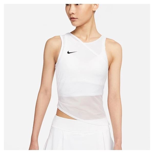 NikeCourt Women’s Dri-FIT Advantage Slam Tennis Tank. Colorblocking, mesh panels, and an asymmetrical hem combine to make this very modern piece. The mesh is lightweight and breathable and the fabric is super stretchy so you can move with ease. Nike’s Advantage technology brings you exceptional moisture-wicking properties.